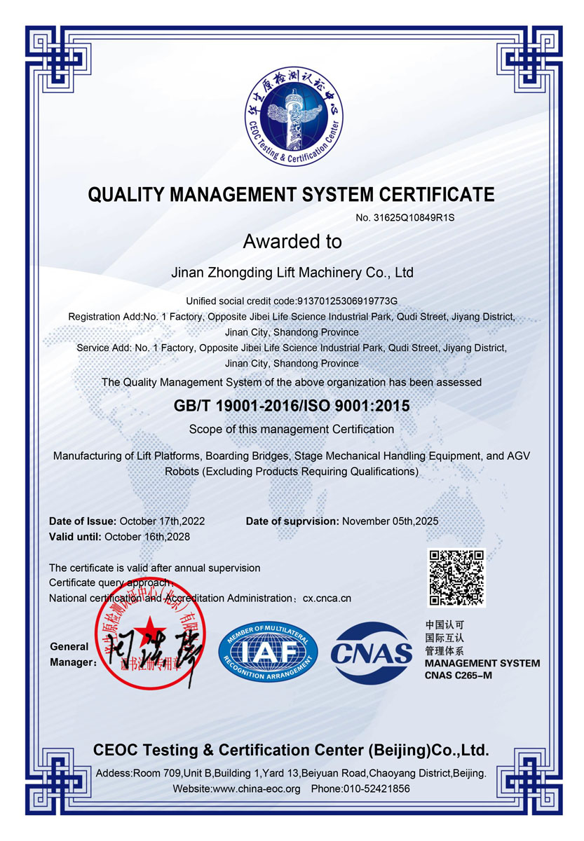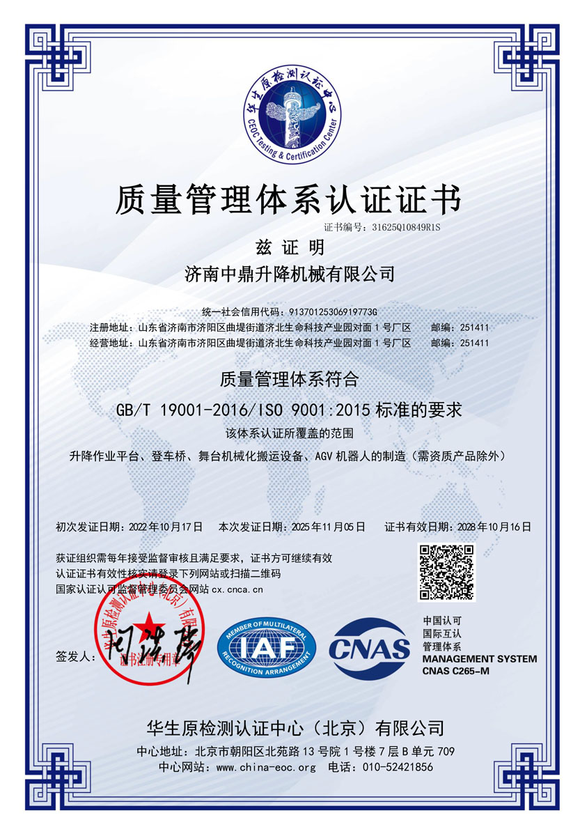 济南中鼎升降机械有限公司,是一家专业从事非标升降机,垂直输送解决方案的集成服务商,总部位于山东省济南市高新区大数据产业基地A栋,注册资本3000万元,生产车间30000平方米,年产值上亿元,目前拥有一支150人的高效团队。自2015年成立以来,公司始终秉承“创新、协同、稳健、责任”的经营理念,以工业4.0为发展方向,致力于推动“智能制造”和“科技企业”的发展观,深度解决工业领域的垂直输送与自动化高效匹配问题,为客户提供高效、智能的设备与系统解决方案。 公司成立以来,已为超过5000家企业提供设备...