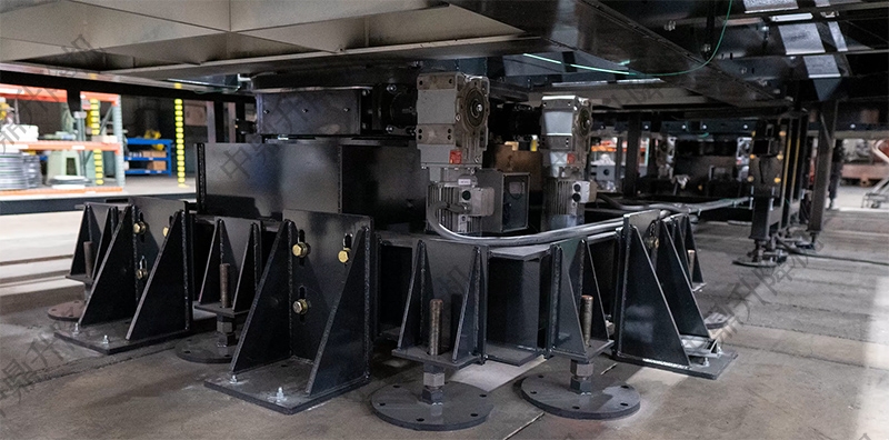 本套重型物料搬运及自动化系统,专为测试区重型设备的搬运与精准定位需求定制,核心配置包含两套地埋式转盘(附带轨道)及多台电池驱动运输车。