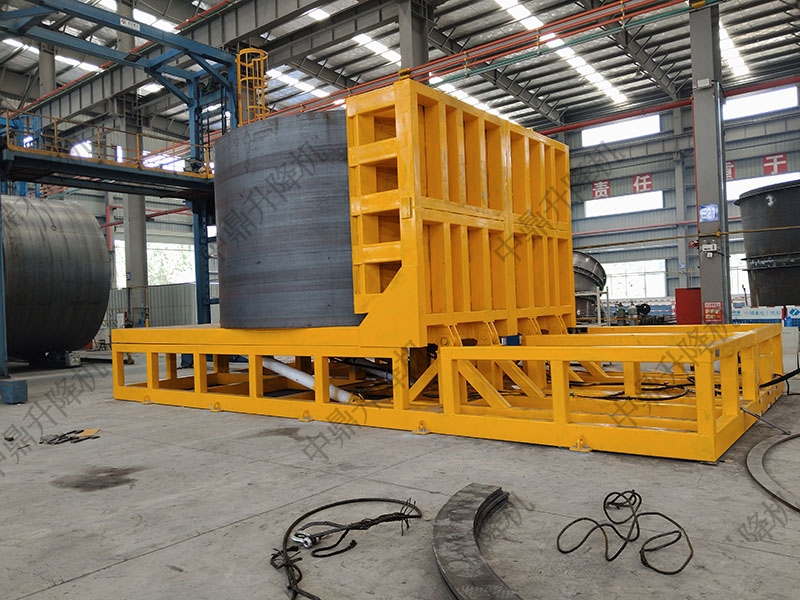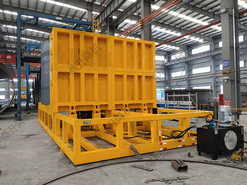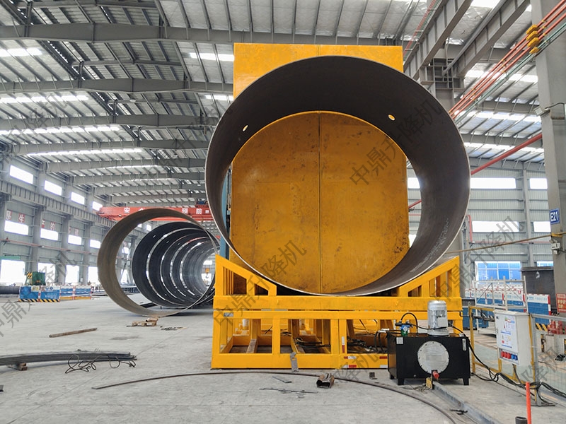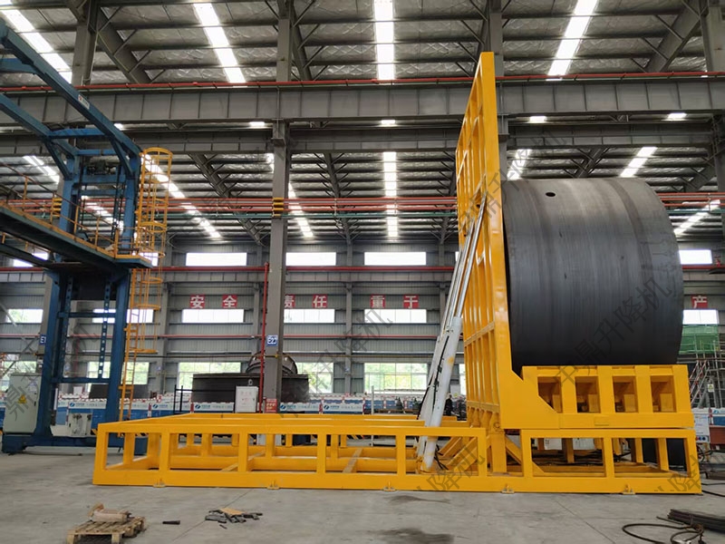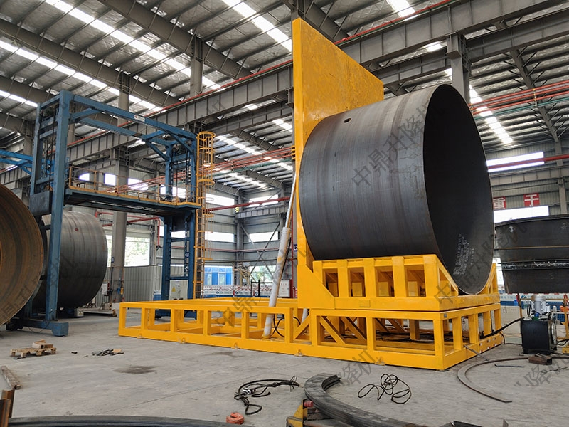 该翻转机用于翻转3米长压力管道,3×4 8米台面加V型槽,适配2500-7000mm工件,380V电压,黄色外观,翻转安全高效。