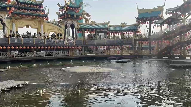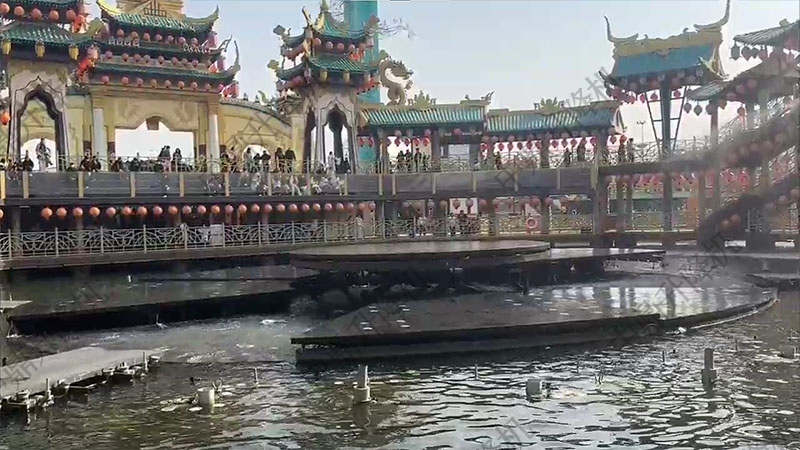 景区圆形水中升降舞台是融合机械与水景的特色表演平台。其圆形设计增强视觉聚焦,可沿垂直方向平稳升降,配合水下灯光与喷水系统,营造沉浸式氛围。