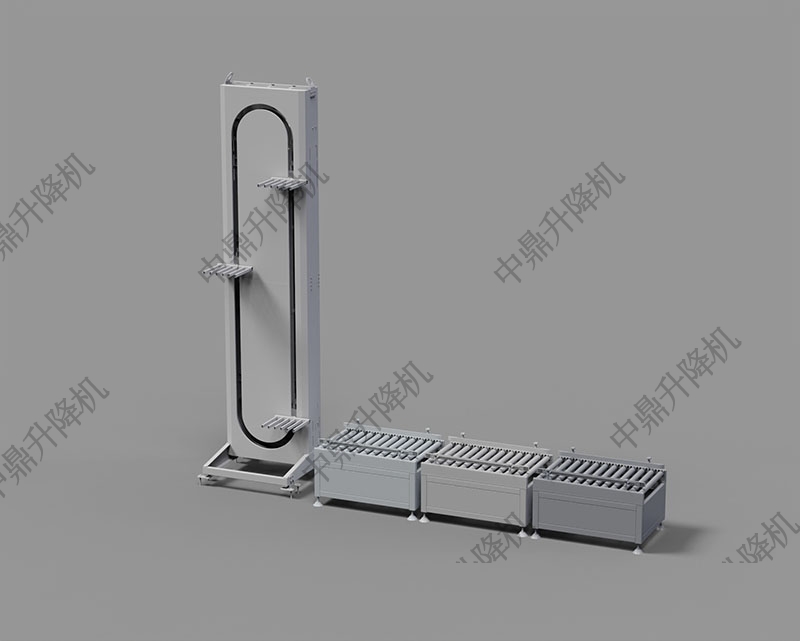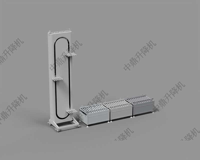 叉臂循环式提升机是一种高效稳定的物料提升设备,适用于不同楼层之间的货物输送。它与进出口输送线组合,形成完整的连续升降系统,实现多楼层、多进多出的自动化作业。