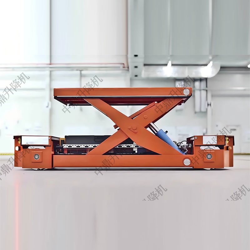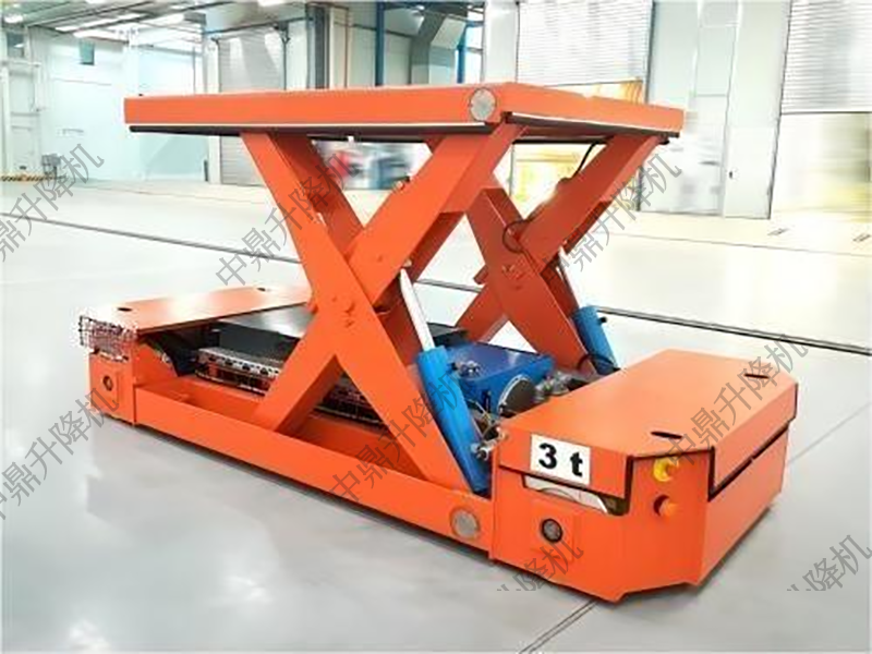 这款3吨麦克纳姆全向转运车具有灵活的全向移动能力,适合在狭小空间内操作。配备剪叉式升降平台,能够由液压升降器精确调整高度。