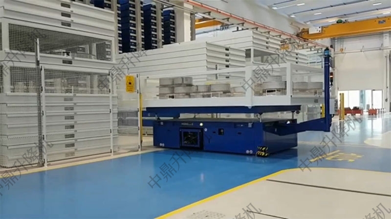 升降平台功能:装备一个200毫米行程的升降平台,可灵活提升和放置仓库托盘到指定支架上。这一功能提高了物料的搬运效率,减少了手动操作的时间和劳动力成本,优化了仓库的整体作业流程。